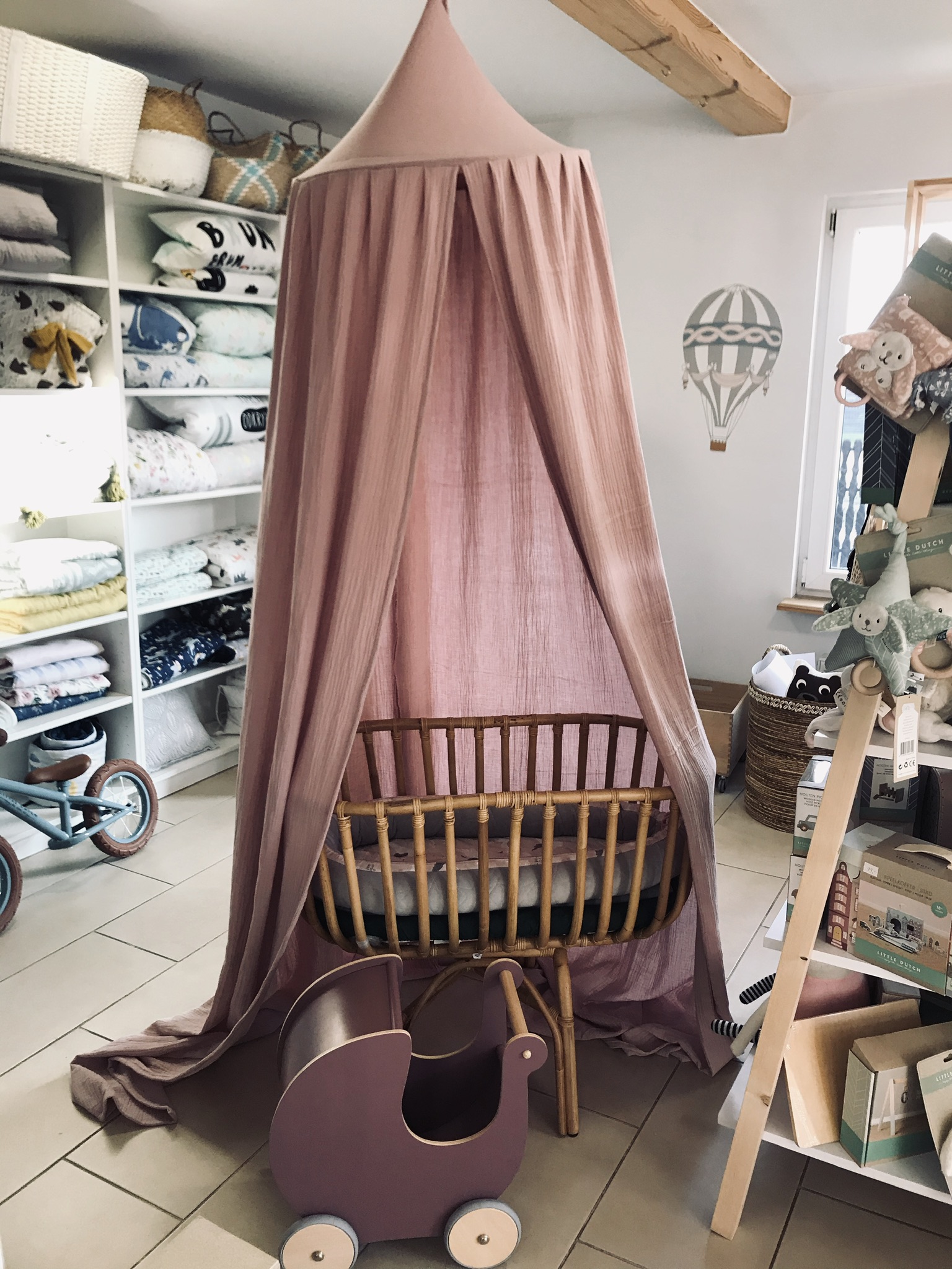 Baldachim jest stylowym elementem wystroju pokoju dziecięcego. Można go zawiesić nad łóżkiem dziecka lub w innym dowolnym miejscu i stworzyć przytulne, magiczne miejsce zabaw i odpoczynku, w którym dziecko będzie mogło rozwijać swoją wyobraźnię i kreatywność.