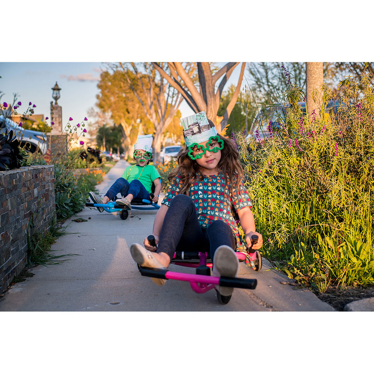 - Intuicyjne sterowanie ruchem ciała – Pojazd wprawiany jest w ruch dzięki naprzemiennym ruchom nóg na przednim drążku, co generuje płynne przesuwanie się do przodu (tzw. ruch serpentynowy). Kierunek jazdy kontroluje się balansem ciała, a sama forma napędu wspiera koordynację ruchową oraz aktywność fizyczną dziecka. Konstrukcja nie wykorzystuje łańcucha, pedałów ani baterii, dzięki czemu jest trwała i mniej podatna na awarie.
